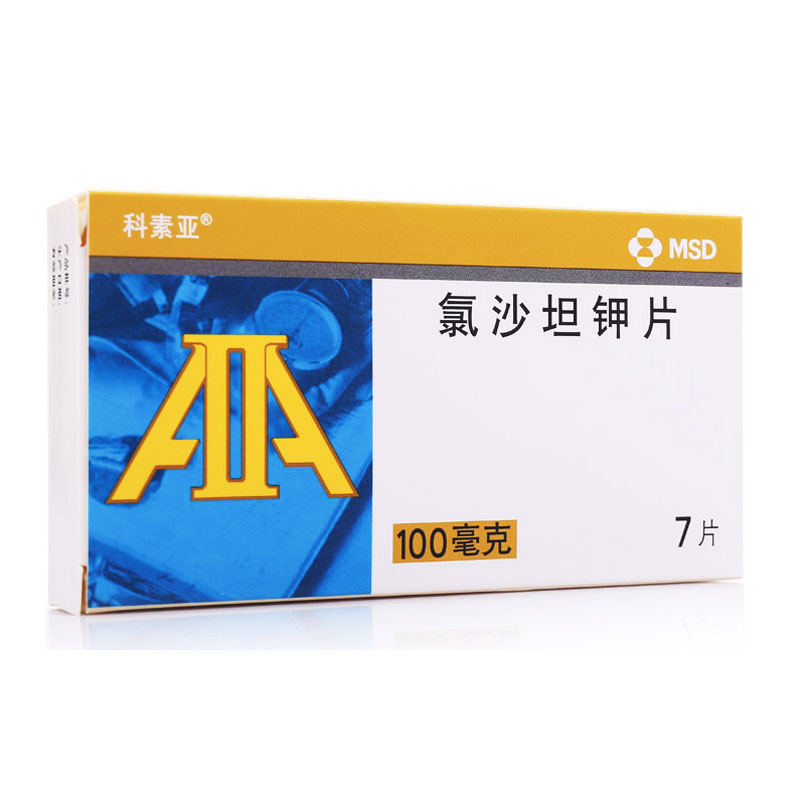 本品主要成分为氯沙坦钾。 化学名:2-丁基-4-氯-1-[[2’-(1H- 四唑-5-基)[1,1′ -联苯基]-4-基]甲基]-1H-咪唑-5-甲醇单钾盐。 分子式:C22H22ClKN6O 分子量:461.01