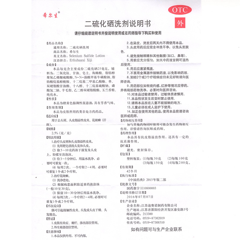 【希尔生】二硫化硒洗剂 2.5%*100g