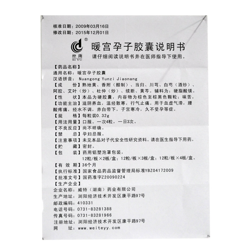 【 丝雨】 暖宫孕子胶囊 0.32g*12粒*2板