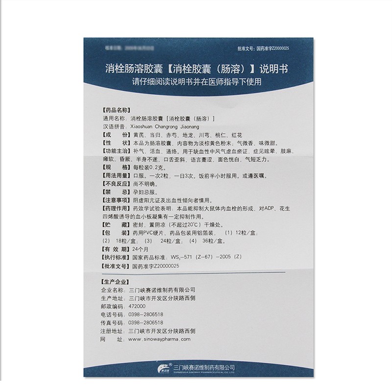 【赛诺维】消栓肠溶胶囊[消栓胶囊(肠溶)] 12粒*2板 补气活血通络 用于缺血性中风气虚血瘀症