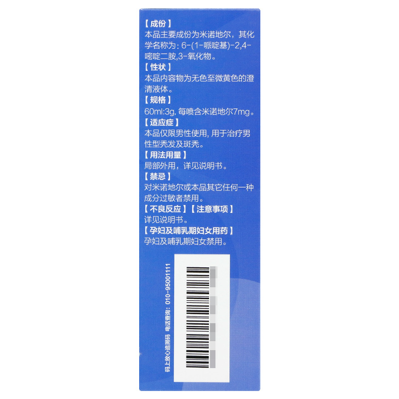 6.使用本品时,应注意观察由米诺地尔引起的全身作用的一些征兆。一旦发生全身作用或严重的皮肤病反应,患者应停止使用本品,并与医生联系。