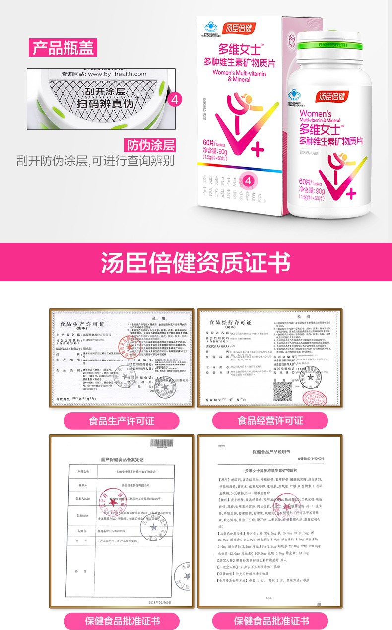 【汤臣倍健】多维女士牌多种维生素矿物质片 1.5g*60片 增强免疫