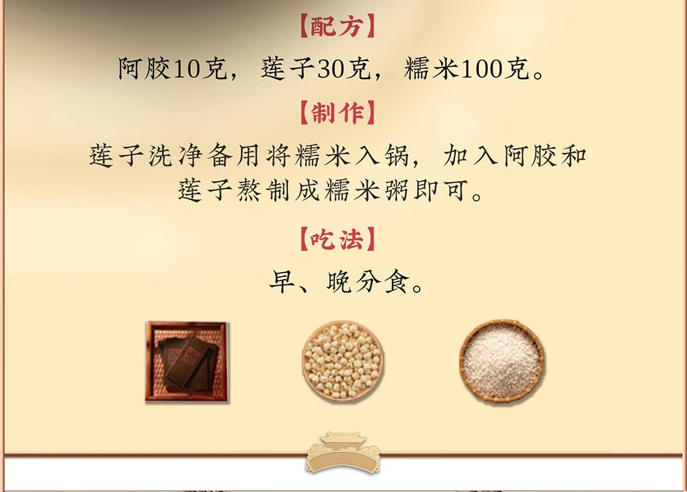 补血滋阴,润燥,止血。用于血虚萎黄,眩晕心悸,心烦不眠,肺燥咳嗽。