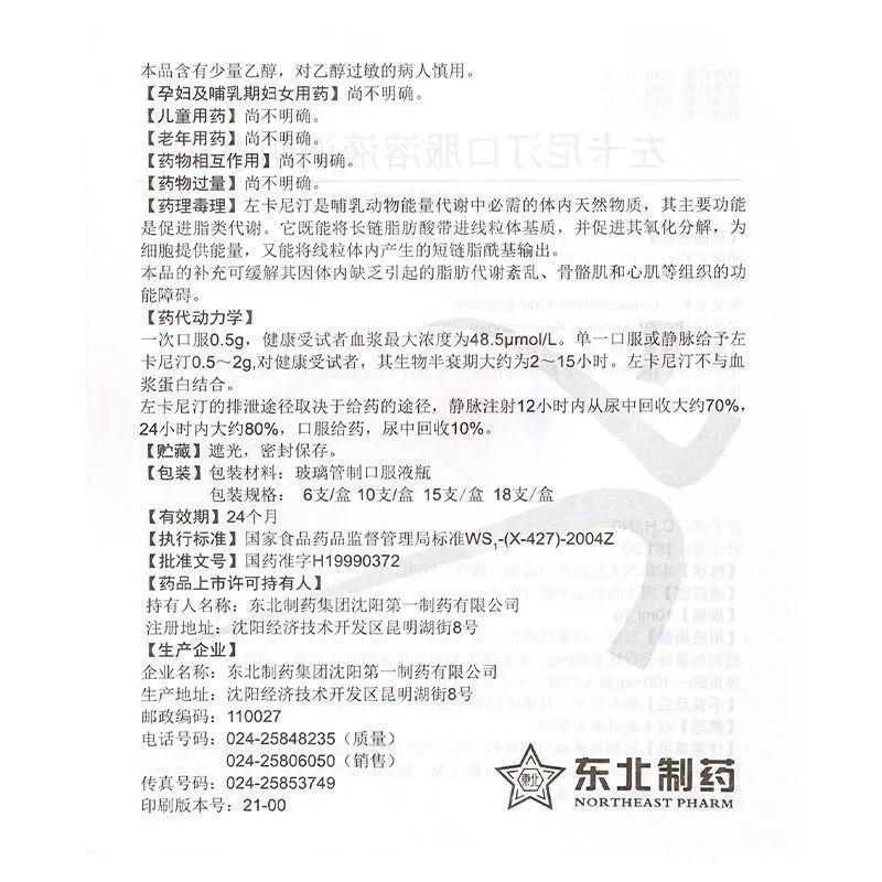 【东北制药】 东维力 左卡尼汀口服溶液 10ml*18支