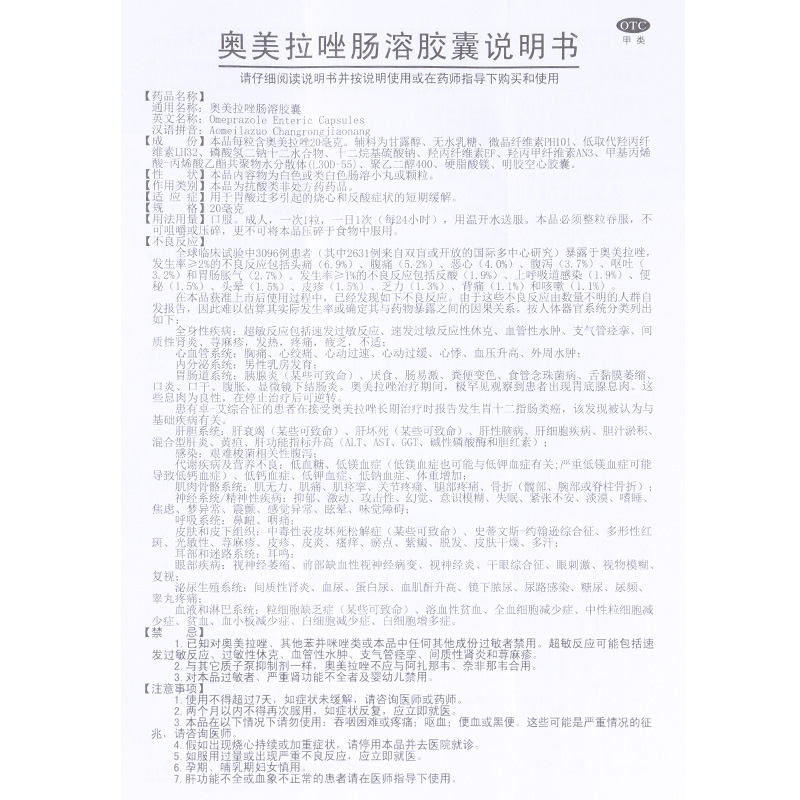 【蓝素】奥美拉唑肠溶胶囊 20mg*27粒胃酸过多引起的反酸烧心正品胃药